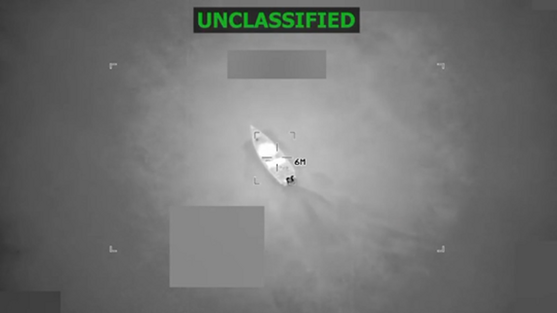 Savunma Bakanı Hegseth’in paylaştığı son saldırı videosunda, su üzerindeki bir teknenin bulanıklaştırıldığı, ardından patlamayla birlikte alevler içinde kaldığı görülüyor.