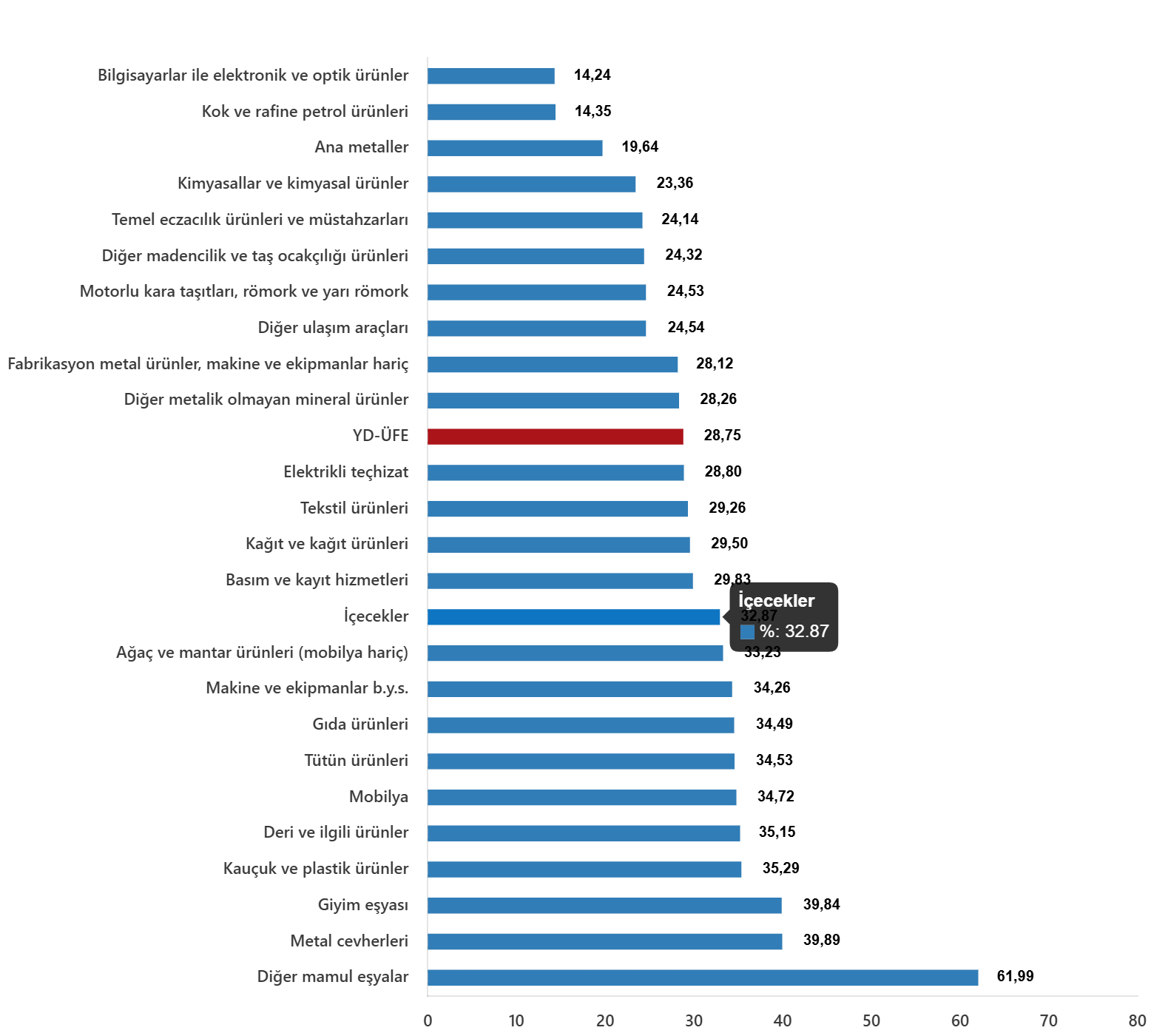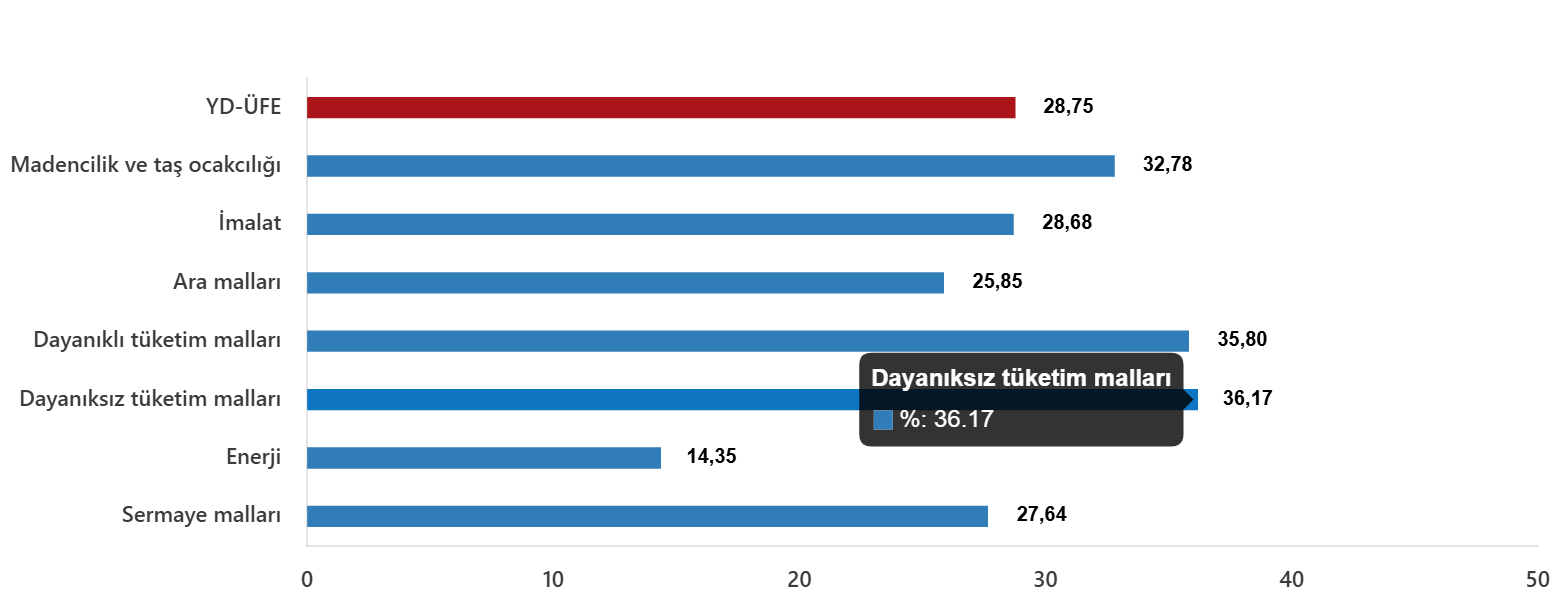 YD-ÜFE imalat ürünlerinde yıllık %28,68 arttı